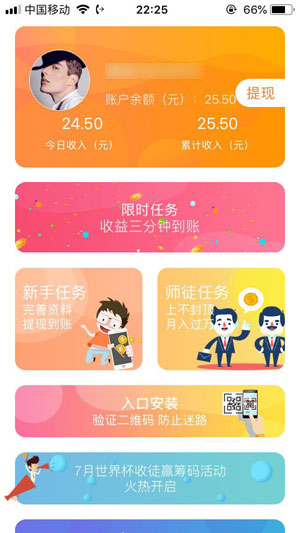 安卓版下载 大小:11.9MB 下载:3256次 天天赚钱 支 持:苹果手机 分 类:手机游戏 大 小:11.9MB 版 本:1.1.0 评 分: 开发者:武汉天天有量网络科技有限公司 下载量:3256次 发 布:2099-09-06 22:39 手机扫码免费下载 #天天赚钱截图 #天天赚钱简介 天天赚钱是苹果应用试玩平台,下载应用试玩就能赚钱的软件,单价1元左右,10元提现。每天大量任务,赚钱后可通过支付宝提现或话费充值,躺着赚钱轻松提现。